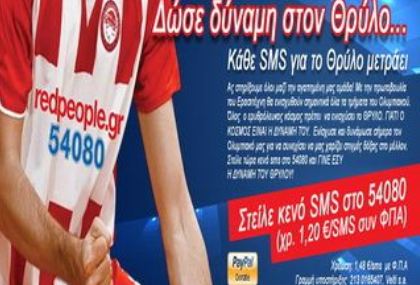 Την ικανοποίησή της στην ανταπόκριση των οπαδών του Ολυμπιακού στην προσπάθεια που γίνεται μέσω των SMS για την οικονομική ενίσχυση του συλλόγου, εξέφρασε η διοίκηση του Ερασιτέχνη μέσω ανακοίνωσης που εξέδωσε. Τα μηνύματα των φίλων του Ολυμπιακού στο 54 080 βρίσκονται σε απόσταση… αναπνοής από τις 50.000 κάτι που ευχαριστεί αρκετά τους ανθρώπους που βρίσκονται πίσω από αυτή τη μεγάλη προσπάθεια.