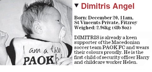 Στην εφημερίδα «Sunday Herald» και στην ενότητα που το κοινό μπορεί να δημοσιεύει φωτογραφίες των παιδιών του, φιλοξενείται αυτή την Κυριακή ένας μικρός φίλος του ΠΑΟΚ, ονόματι Δημήτρης. Ο μικρός, γεννημένος στις 20 Δεκεμβρίου, φορά ένα φορμάκι που δηλώνει ξεκάθαρα την οπαδική του προτίμηση.
