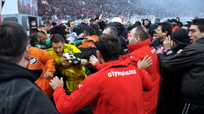 Η ανεπανάληπτη επίθεση και οι χειροδικίες εις βάρος ποδοσφαιριστών της ομάδας μας κατά την αποχώρησή τους από τον αγωνιστικό χώρο, μέσα στο γήπεδο και στον προθάλαμο των αποδυτηρίων από πανηγυρίζοντες (!) οπαδούς και ανθρώπους ασφαλείας (!) της γηπεδούχου· ο προπηλακισμός και οι ύβρεις σε διεθνείς Έλληνες και ξένους ποδοσφαιριστές από τον πρόεδρο της Super League, κ. Μαρινάκη και οι τραμπουκισμοί από τον ίδιο και τη συνοδεία του μέχρι την αποχώρηση της ομάδας μας από το «Γ. Καραϊσκάκης» συμπληρώνουν ένα σκηνικό οχετού που, σε συνδυασμό με τη διαιτησία που είχε προηγηθεί, καθίσταται μοναδικό και ανεπανάληπτο μνημείο νοθείας και αλητείας στα Ελληνικά ποδοσφαιρικά χρονικά. Ζήσαμε για να δούμε να «παντρεύονται» ο Παπουτσέλης και η «Ριζούπολη» σε συσκευασία του ενός. Συγχαρητήρια!